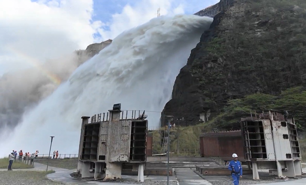 Actualmente, al sitio de presa están ingresando cerca de 1.300 metros cúbicos de agua por segundo, un volumen que se considera normal dentro del esquema operativo del proyecto, y muy por debajo de la capacidad máxima del vertedero, que puede evacuar hasta 22.000 m³/s.
